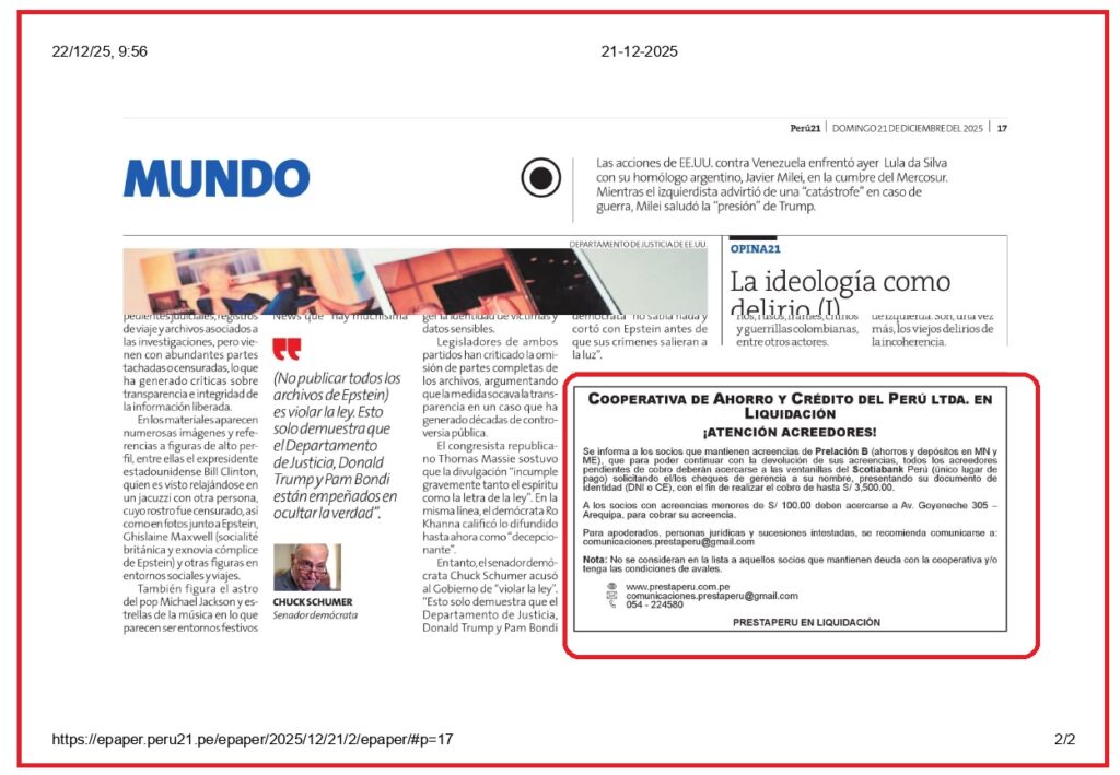 PUBLICACIÓN 21 DIC 2025 – DIARIO PERU 21